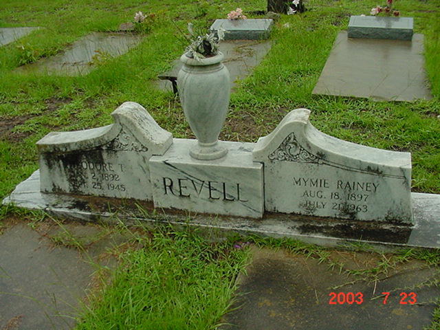 15 Mar 2009Husband: Theodore T. Revell #2804 died at age: 53 Born: 2 Jan 1892 in Crawford County, Georgia 1,2 Census: 2 Jun 1900 in Crawford County, Georgia 2 Died: 25 Sep 1945 in 1 Buried: Sep 1945 in Snow Ridge Cemetery, Ashburn, Turner County, Georgia 1 Father: James R. Revell #2798 Mother: Mary Elizabeth Britt #2799