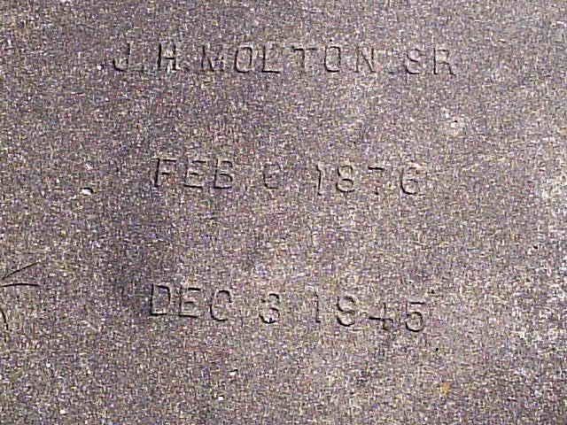 15 Mar 2009Husband: James Henry Molton Sr. #2631 died at age: 69 Born: 6 Feb 1876 in Crawford County, Georgia 1,2 Census: 16 Jun 1880 in Crawford County, Georgia 2 (see note 1) Census: 20 Jun 1900 in Crawford County, Georgia 3 (see note 2) Census: 9 Apr 1930 in Bibb County, Georgia 4 (see note 3) Died: 3 Dec 1945 in Bibb County, Georgia 1 Buried: Dec 1945 in Evergreen Cemetery, Macon, Georgia 1 Father: John Thomas Molton Sr. #1915 Mother: Sarah Jane Britt #1897