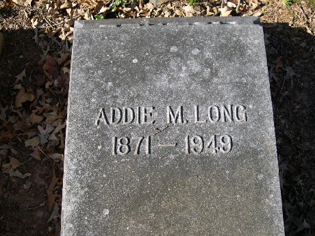Sources: (1) Saving Graves: Mount Paron/Bethany Chapel (http://www.rootsweb.com/~gaccsg/mtparonbethany/mtparonbethany.htm), File: Bk3306 Tombstone.jpg. (2) Lewis Andrews Sr., Mount Paron Church Church Cemetery List, Crawford County, Georgia (http://ftp.rootsweb.com/pub/usgenweb/ga/crawford/c emeteries/mtparan.txt). The church has been renamed to Bethany Bible Chapel. (3) DeLores Boyer-Smith, Family Information and Research. (4) Compiled by: Crawford County Historical Society, Crawford County, Georgia; Families on the Fall Line (Crawford County Historical Society, Knoxville, GA (Wolfe Publishing)), Pg. 179. (5) Lewis Andrews Sr. (Compiled & Transcribed), Marriage Records of Crawford County, Georgia; 1823 - 1999 (http://www.usgennet.org/usa/ga/county/crawford/Marriages/marriagerecs.htm). Indexed: Long, R. L. to McElmurray, Addie. Book 5. (6) Saving Graves: Mount Paron/Bethany Chapel (http://www.rootsweb.com/~gaccsg/mtparonbethany/mtparonbethany.htm), File: Bk3308 Tombstone.jpg. (7) Lewis Andrews Sr., Mount Paron Church Church Cemetery List, Crawford County, Georgia (http://ftp.rootsweb.com/pub/usgenweb/ga/crawford/c emeteries/mtparan.txt). The church has been renamed to Bethany Bible Chapel. Listed: Long, Addie M. (8) Saving Graves: Mount Paron/Bethany Chapel (http://www.rootsweb.com/~gaccsg/mtparonbethany/mtparonbethany.htm), File: Bk5083 Tombstone.jpg. Event Notes Note (1) Only 1855 for Birth, and 1923 for Death are on the cemetery marker. Note (2) There are no Birth/Death dates on Addie's marker. Family History Files of Rozine Britt-Bickel Email: DonaRoze(at)aol(dot)com